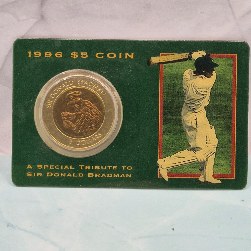 1996 $5 Sir Donald Bradman Bimetallic Carded Coin