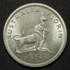1954 Australian Florin issued to commemorate the first visit to Australia by Queen Elizabeth II. Struck at the Melbourne Mint, this circulating commemorative features Leslie Bowles’ elegant reverse design of a crowned lion standing atop a Tudor-style crown, symbolising the monarchy’s connection to Australia. The obverse carries the young laureate portrait of Queen Elizabeth II by Mary Gillick. A popular type coin, especially desirable in Gem Uncirculated condition due to its brilliant lustre and sharply struck devices.